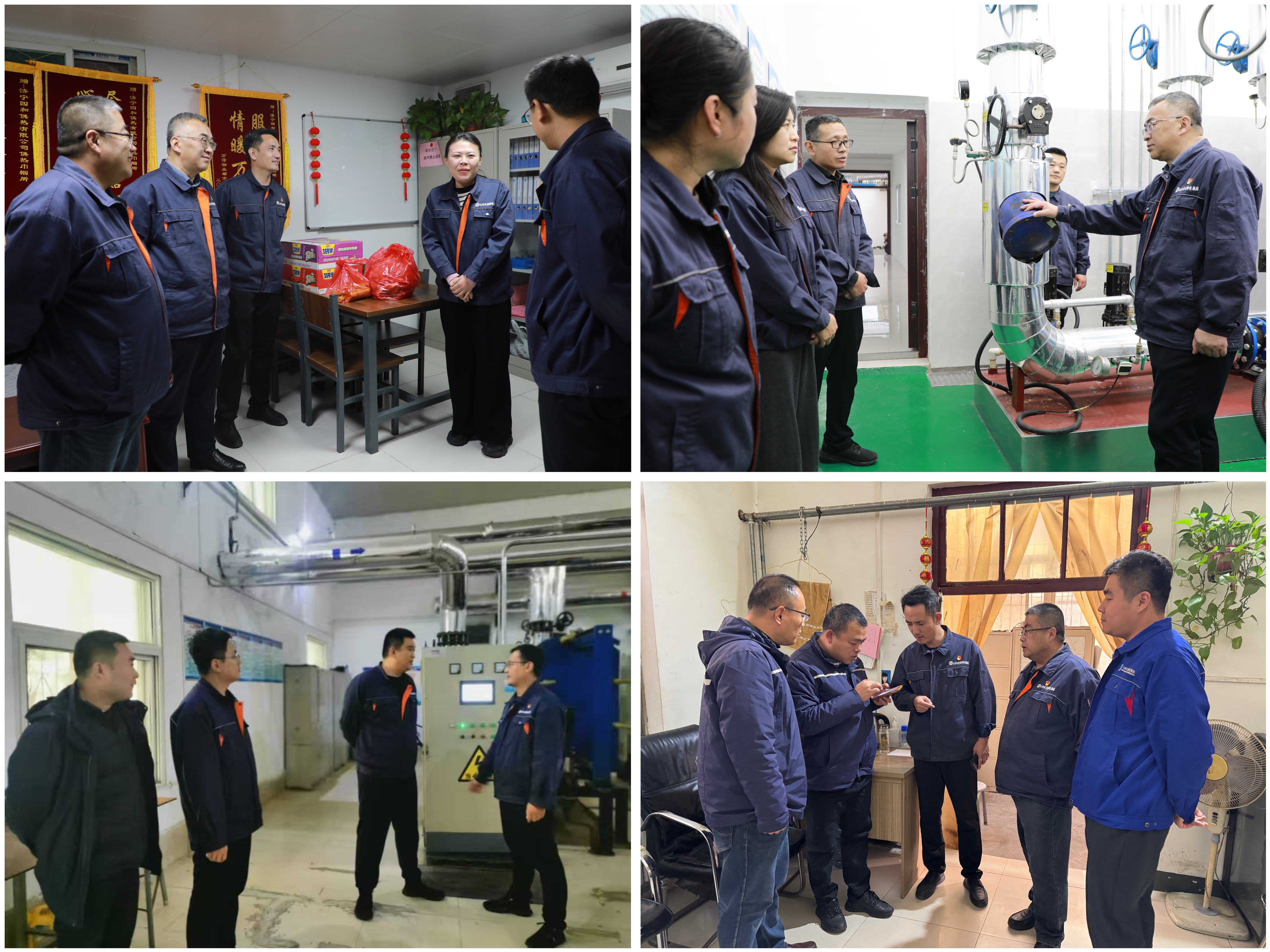 在各供热站点,领导班子详细了解系统运行调试、设备维护保养及应急处置准备等各项工作的推进情况,实地查看换热站运行温度,仔细翻阅用户诉求处理台账,全面掌握供暖首日的保障工作落实情况。期间,领导班子与一线职工面对面亲切交谈,详细询问大家的工作安排、值班值守情况,深入了解职工在工作中遇到的实际需求,认真倾听职工心声。领导班子对全体一线职工默默奉献、全力保障群众温暖过冬的责任担当给予充分肯定,同时叮嘱职工注意身体健康,科学合理调整作息时间,以充沛的精力投入到供热保障工作中。